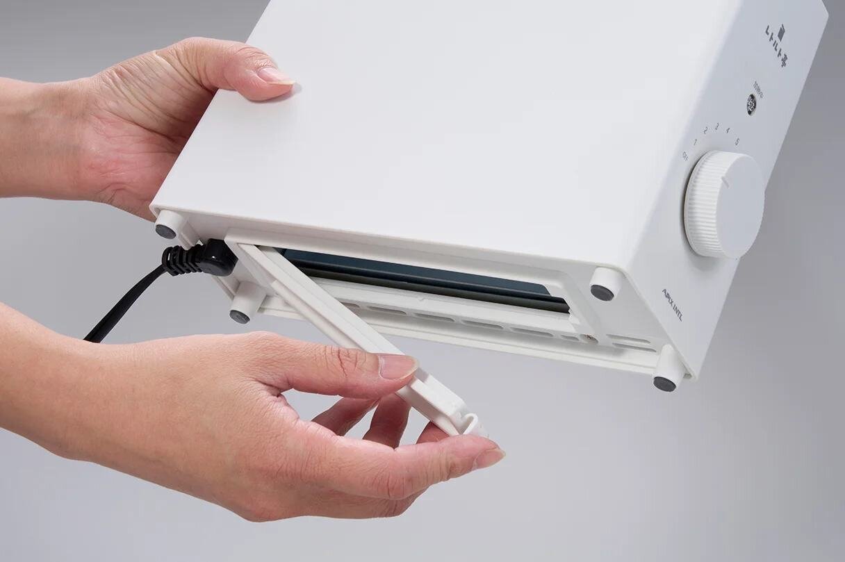 With a slim design of approximately 8cm in width, it easily fits into gaps on shelves. Weighing about 0.8kg, it's light enough to be lifted easily with one hand during cleaning. It can be easily brought along not just at home, but also for car camping or outdoor scenes where it might be very useful.