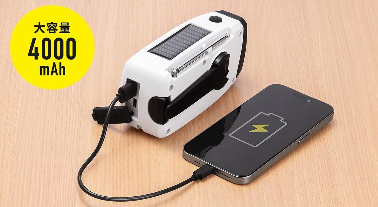 What you want to have prepared for emergencies, such as when an earthquake suddenly occurs, is the multifunctional disaster prevention radio "800-LED100" from Sanwa Supply.