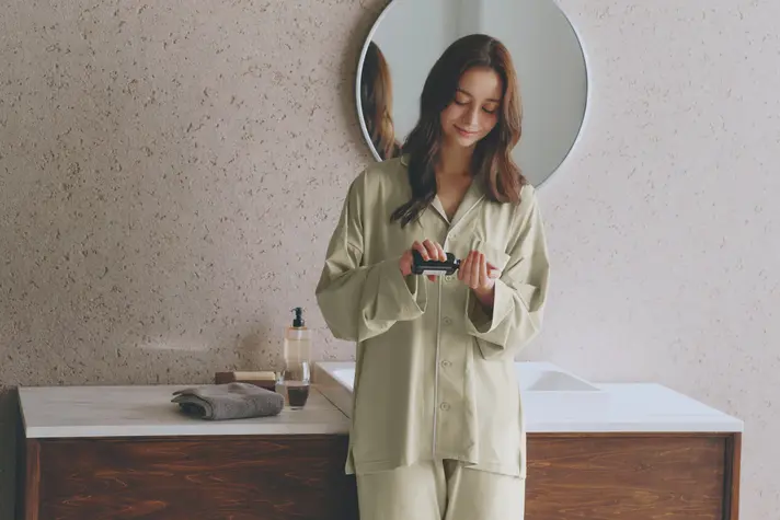 Recovery wear "Science Sleep Pajamas" developed in collaboration with Gunze and a medical device manufacturer, featuring a front-opening design. It can be quickly thrown on with buttons, making it easy to wrap yourself up after a bath and get ready for sleep smoothly. The front-opening style makes it easy to adjust the temperature; on slightly warmer days, you can open the buttons to let air in.