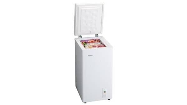 On the other hand, with a rated capacity of 66L, which is equivalent to about two shopping baskets, it can hold a good amount of meat and fish, frozen foods, and stock of bread or rice. Since it is a top-opening model, it is less of a concern regarding door opening space and is also convenient to use even when pushed against the wall.