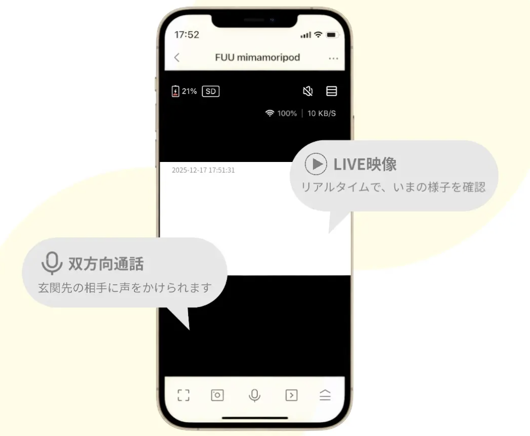 In such situations, a reliable ally is the rental-specific security camera "FUU mimamori pod". It can be easily set up without any construction, making it a safe choice for those living in rental properties. Featuring a waterproof design that allows safe outdoor use, it can be installed at various locations such as entrances or balconies without restrictions. Additionally, it comes with night vision functionality, so even after the entrance light goes off, it continues to record the surrounding area, watching over important packages and your daily life.