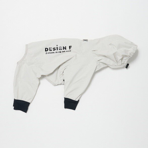 The "Ultra Rain Suit (design f×STANDING ON THE BLUE)" introduced this time is a collaborative development with Design F, which has been creating items for Schnauzers and long-legged terriers for about 30 years. Following the first release of the cable knit, this marks the second collaboration after about a year.