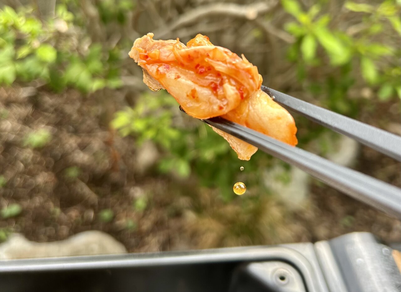 This time I made samgyeopsal, but with the "Camp Multi Griddle," you can also prepare dishes like ajillo and gyoza. Although I am looking for a larger size for camping, unfortunately, many stores seem to be sold out. If you see it in stores, be sure to grab it right away.