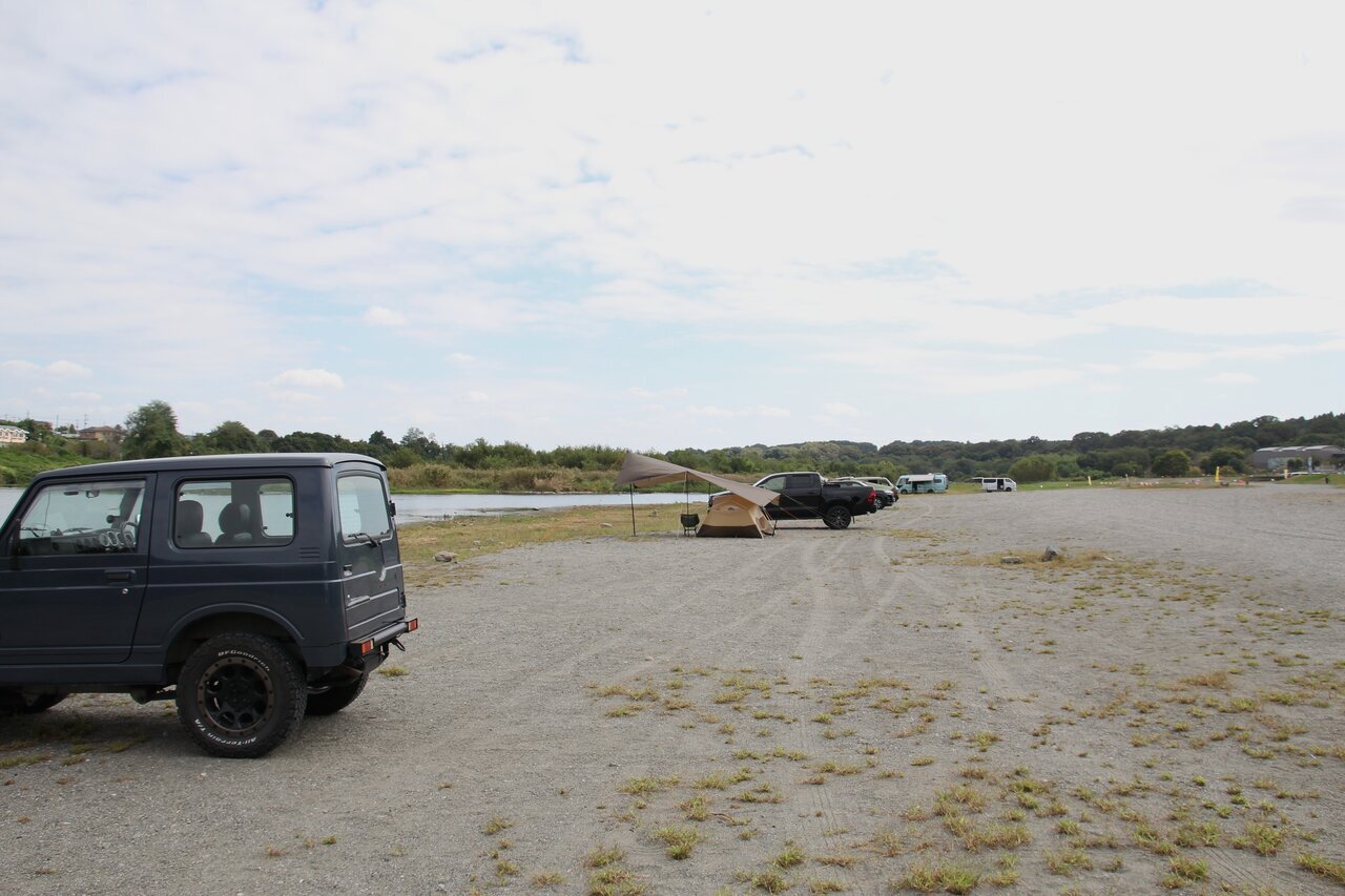 The site is spacious enough to accommodate a significant number of campers, and the noise from cars is not bothersome. A cool breeze that hints at autumn flows through the riverside, making it an incredibly pleasant spot.