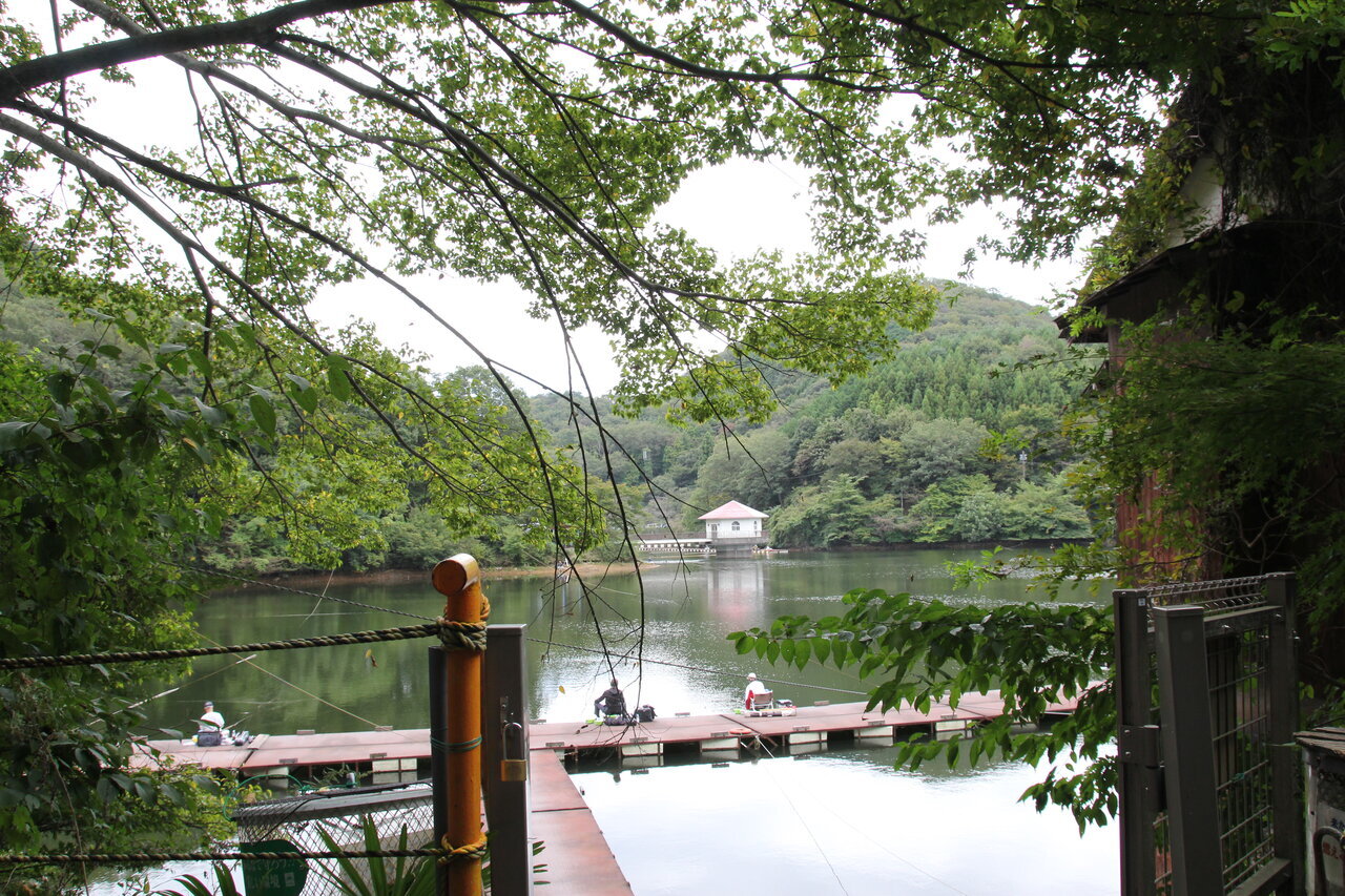 Next, the author visited Lake Tsuburata (円良田湖) in Yoshimi Town. It is famous as a mecca for carp fishing, and there were many carp anglers on the piers along the shore.
