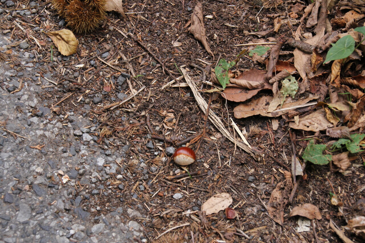 Cute chestnuts were falling by the roadside, reminding me of the arrival of autumn. Most of the fallen ones are empty inside, likely serving as food for the animals living nearby.
