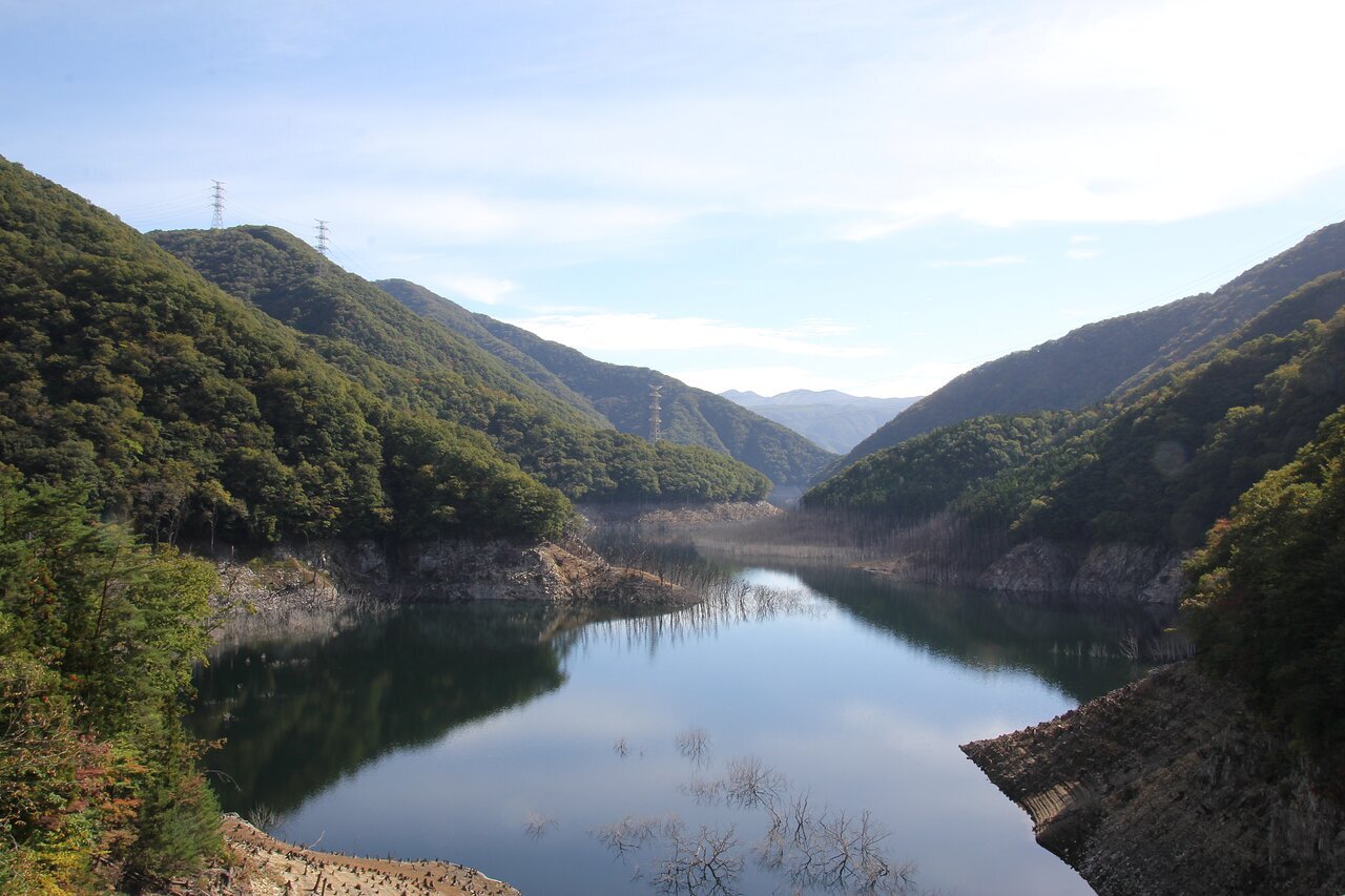 Furthermore, the Yuinishikawa Dam has beautiful submerged forests. As the water level rises and falls, dead trees emerge from the lake surface, presenting a fantastical landscape. There are several large bridges on the prefectural road that cross the river, making it possible to view the submerged forest from the bridge.