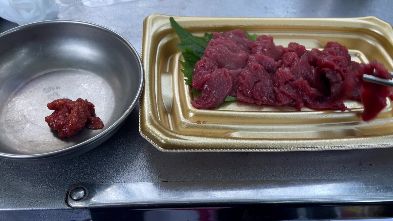 I thought it would be tiring, so I purchased ready-to-eat horse sashimi from Aizu. I bought it at a supermarket in Nikko, and it was fresh with a good taste of miso, surprisingly delicious. I decided to have horse sashimi camping again in Fukushima.