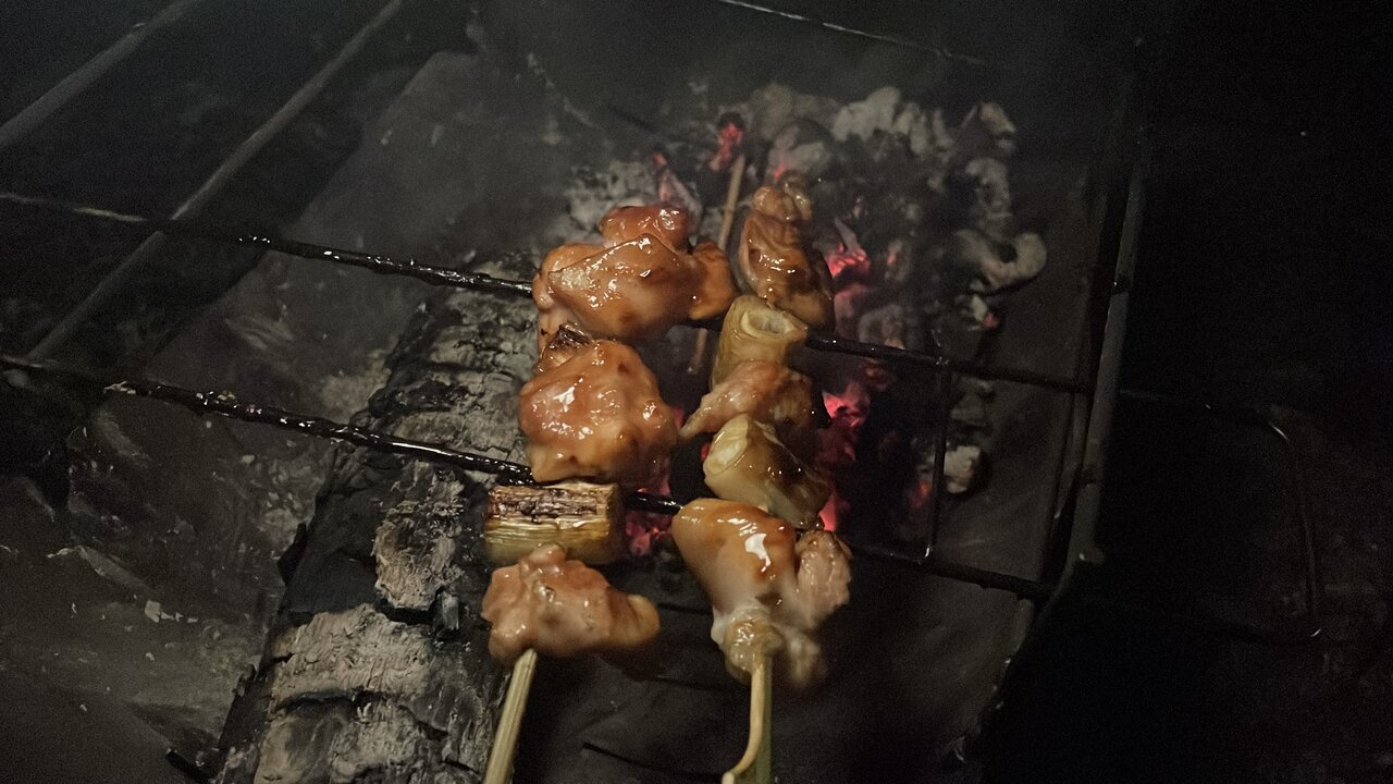 Having a camp meal of horse sashimi and grilled chicken while digital detoxing.