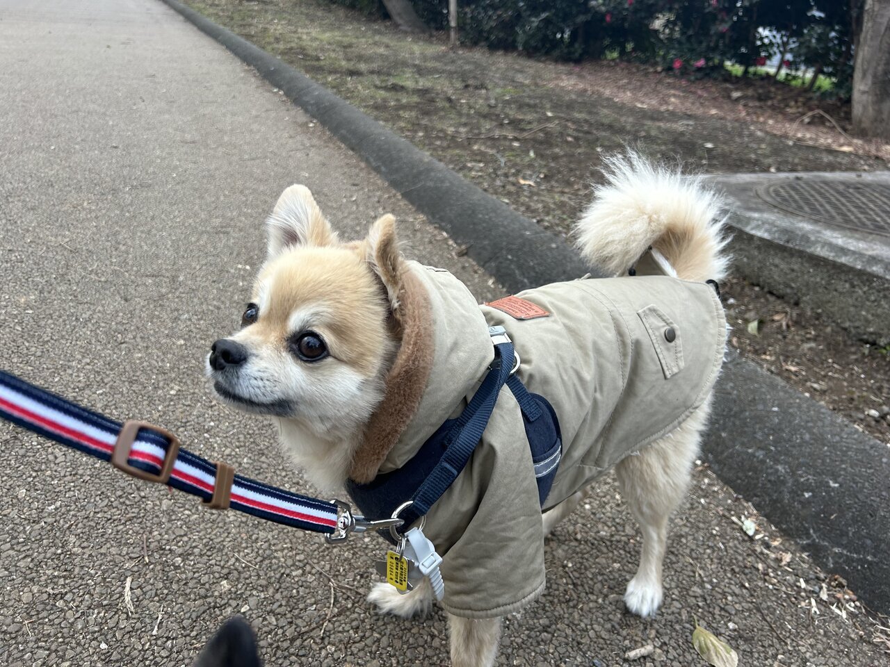 I was concerned about the cold protection aspect, but after taking a walk for about 10 minutes like this... the difference is clear! Normally, my dog would feel cold at this point, but he was relaxed the whole time. I tried putting my hand inside, and it was warm.