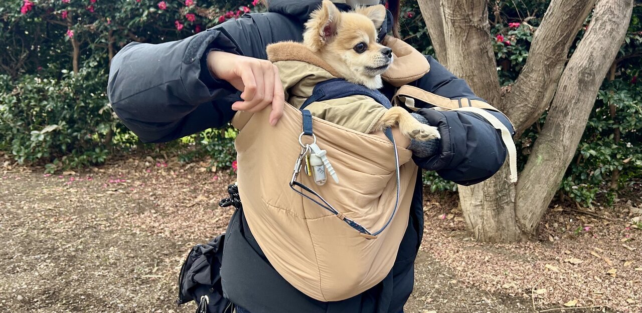 【Practical Report】 Warm and Comfortable! 3COINS' "Dog Sling" is perfect for winter carrying walks.