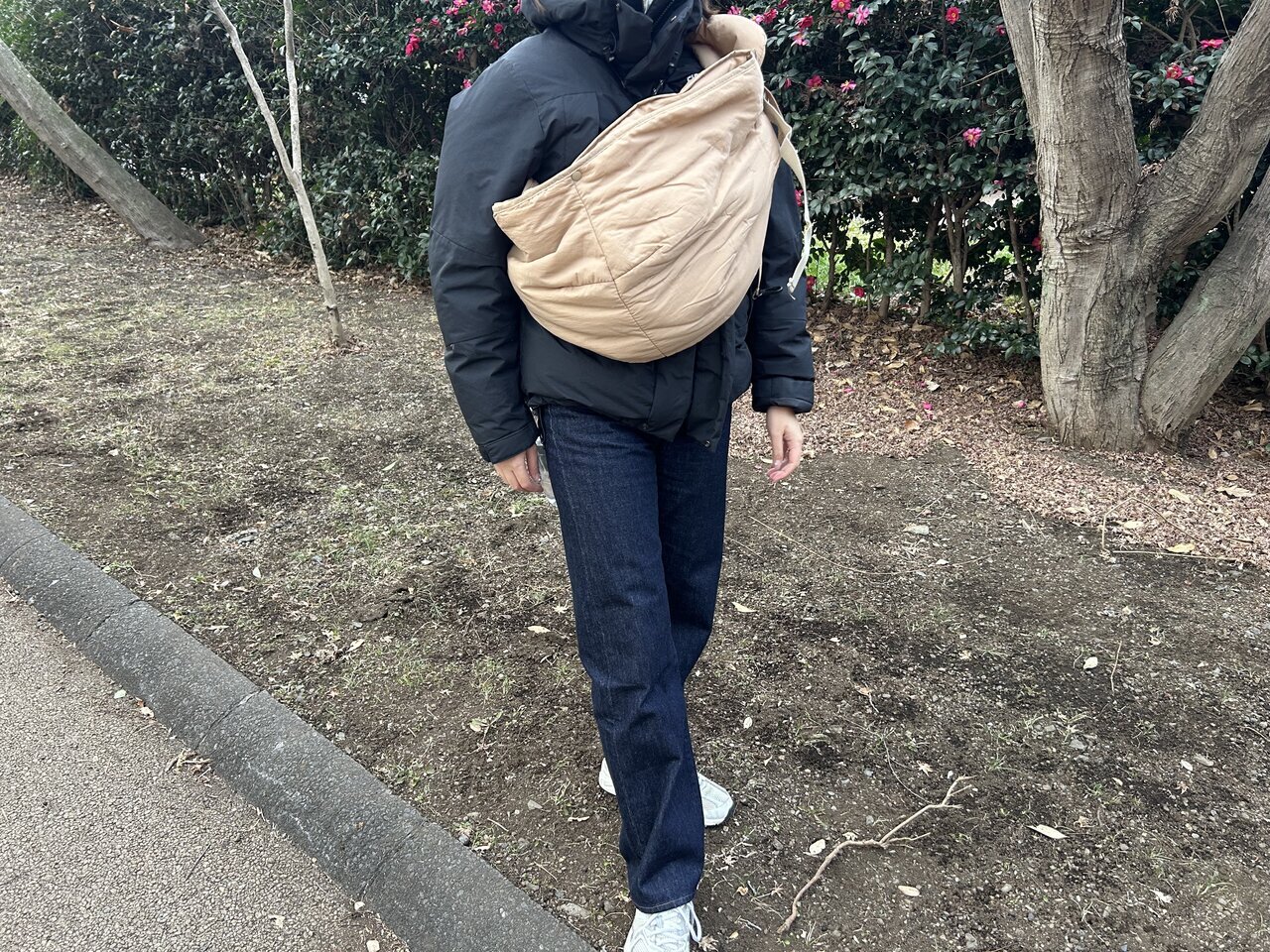 I tried buying the "Dog Sling" from 3COINS. As someone who has two dogs, not only has winter walks become easier, but the price is reasonable, and it has padding, making it excellent as a cold weather measure.