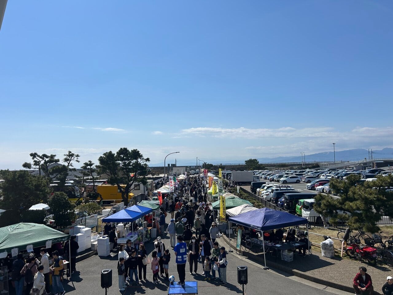 In the grassy area, a music event was taking place. It seems people set up pop-up tents and leisure sheets to enjoy meals purchased at the Oiso Market. Although it was a day when I still felt a bit chilly, the pleasant sunlight pouring down made it quite comfortable.