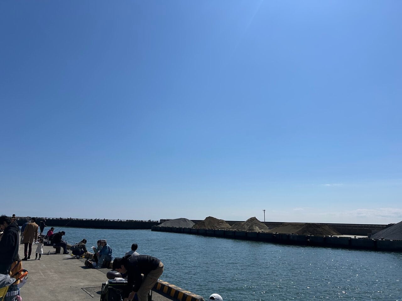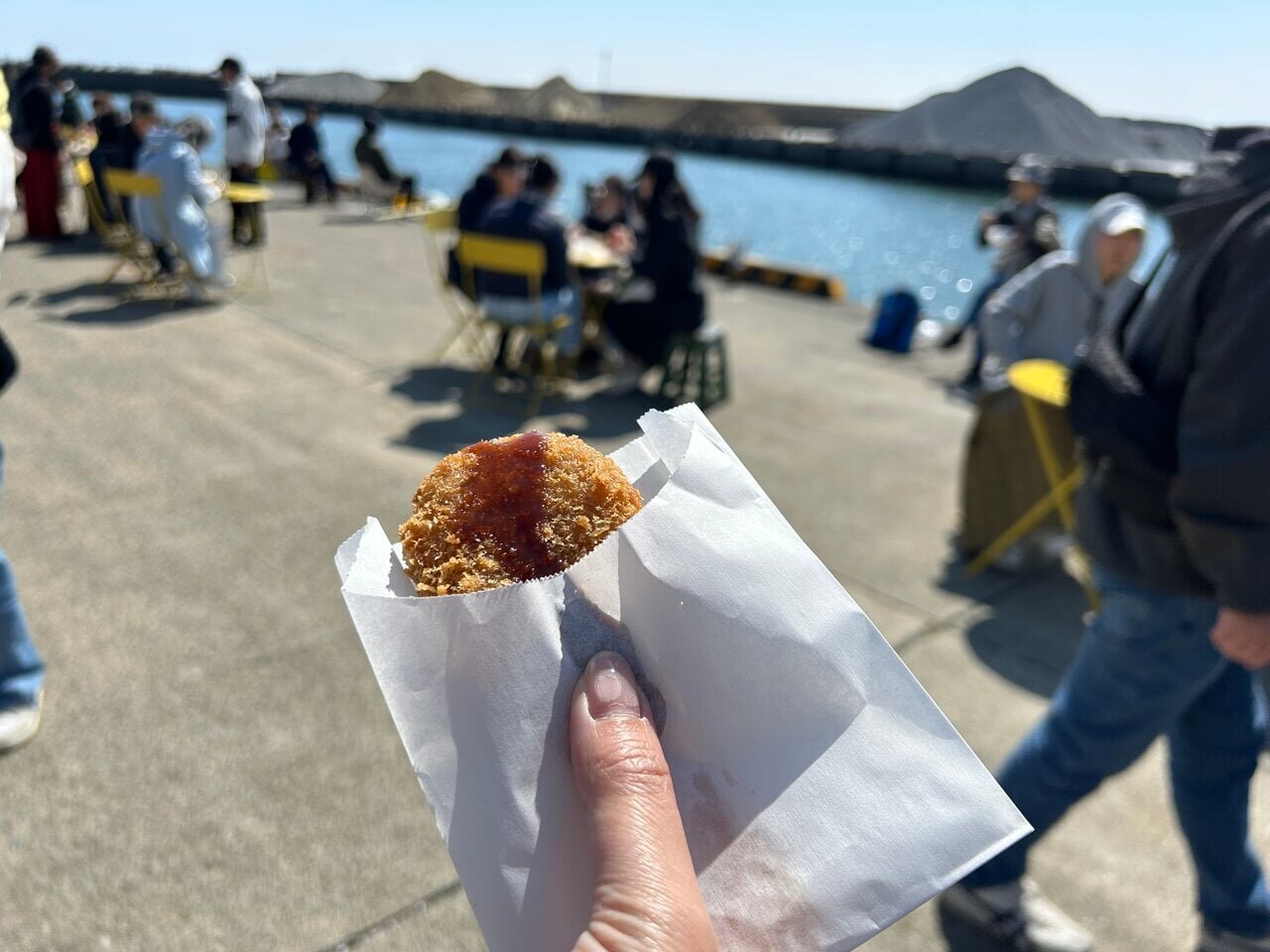 Along the wharf, there are people quietly enjoying fishing. Although the port is usually a quiet place reserved for fishermen, it must be enveloped in excitement on the days of the Oiso Market. Nearby, people enjoying meals and those with dogs are spending their time in their own ways, creating a wonderfully unique blend.