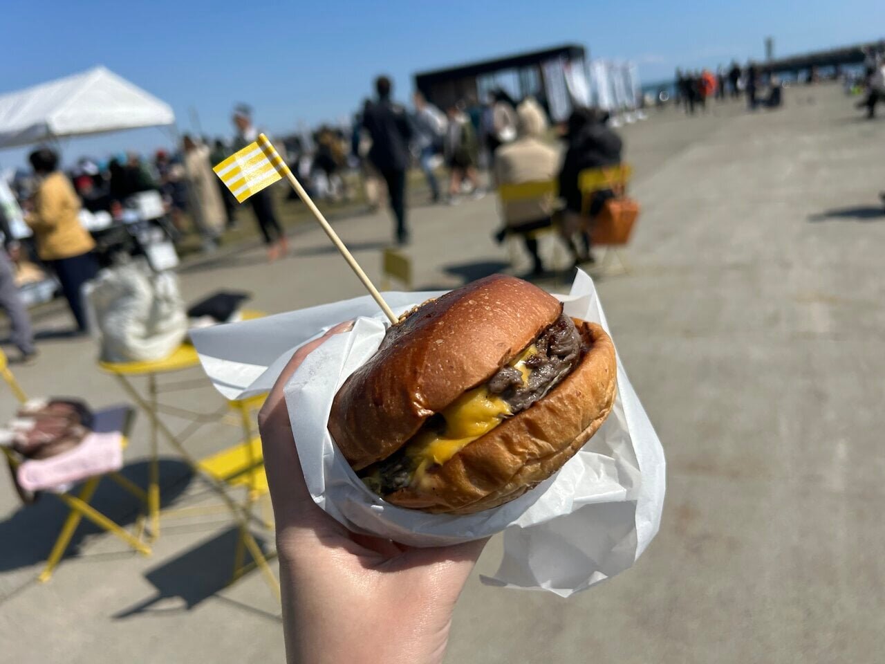 Next, I became interested in Yasuda Burgur. It stands out from traditional food trucks with its cool appearance. Drawn by this presence, I found myself lining up. Unfortunately, the smash burger I was aiming for was sold out, but instead, I chose the "W Thick Beef Aburi Soy Sauce Style Single" (1200 yen), which is a Japanese-style burger that I had never eaten before, heightening my expectations.