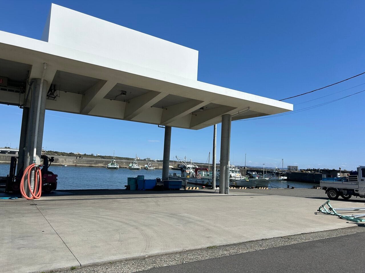 is right next to the bustling venue, showcasing one aspect of Oiso Port as a fishing harbor. During the day, a relaxed landscape unfolds.