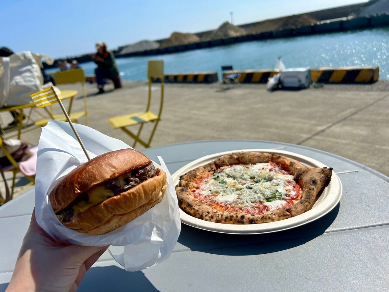 Immediately, I took a big bite of the hamburger. I couldn't help but exclaim "Oh!" because the thick-cut meat was overwhelmingly present. The sweet and savory Japanese-style sauce enhanced the original deliciousness of the meat, and it paired perfectly with the melting cheese. Both the pizza and the burger offer a deliciousness that completely transcends the kitchen truck framework. My family, who were with me, seemed so moved by the incredible taste that they ran off to buy another one.