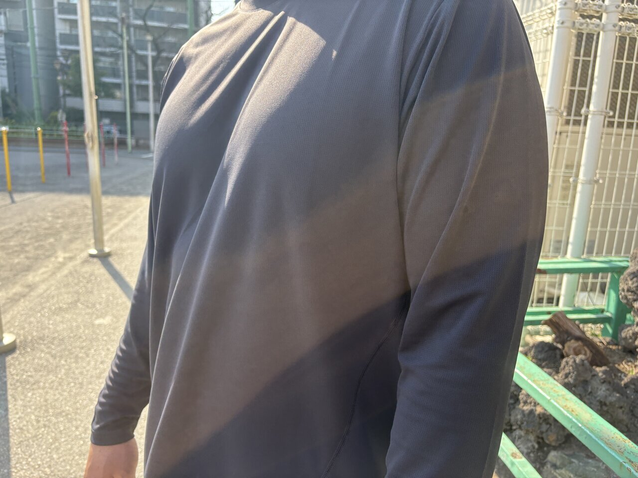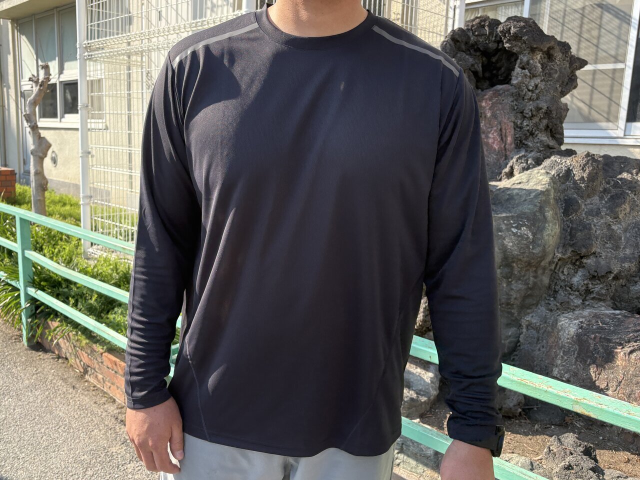 The impression right after putting it on was honestly quite simple. While there was a coolness, it felt more like a lightweight and easy-to-move long sleeve rather than being "very refreshing." The change was noticed after I started moving and began to sweat, just as the previous information suggested.
