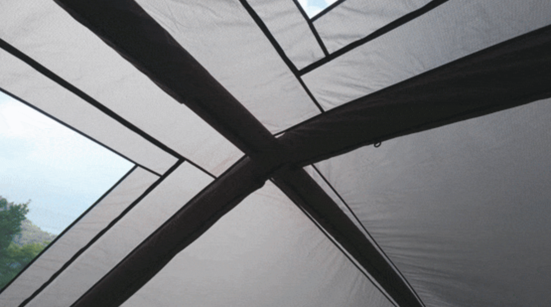 The ceiling section is equipped with a large skylight. The roof sheet also has a TPU window, allowing you to enjoy the night sky even while the roof sheet is attached. It has a black coating with a waterproof rating of 5000mm, protecting the interior of the tent from rain and strong sunlight.