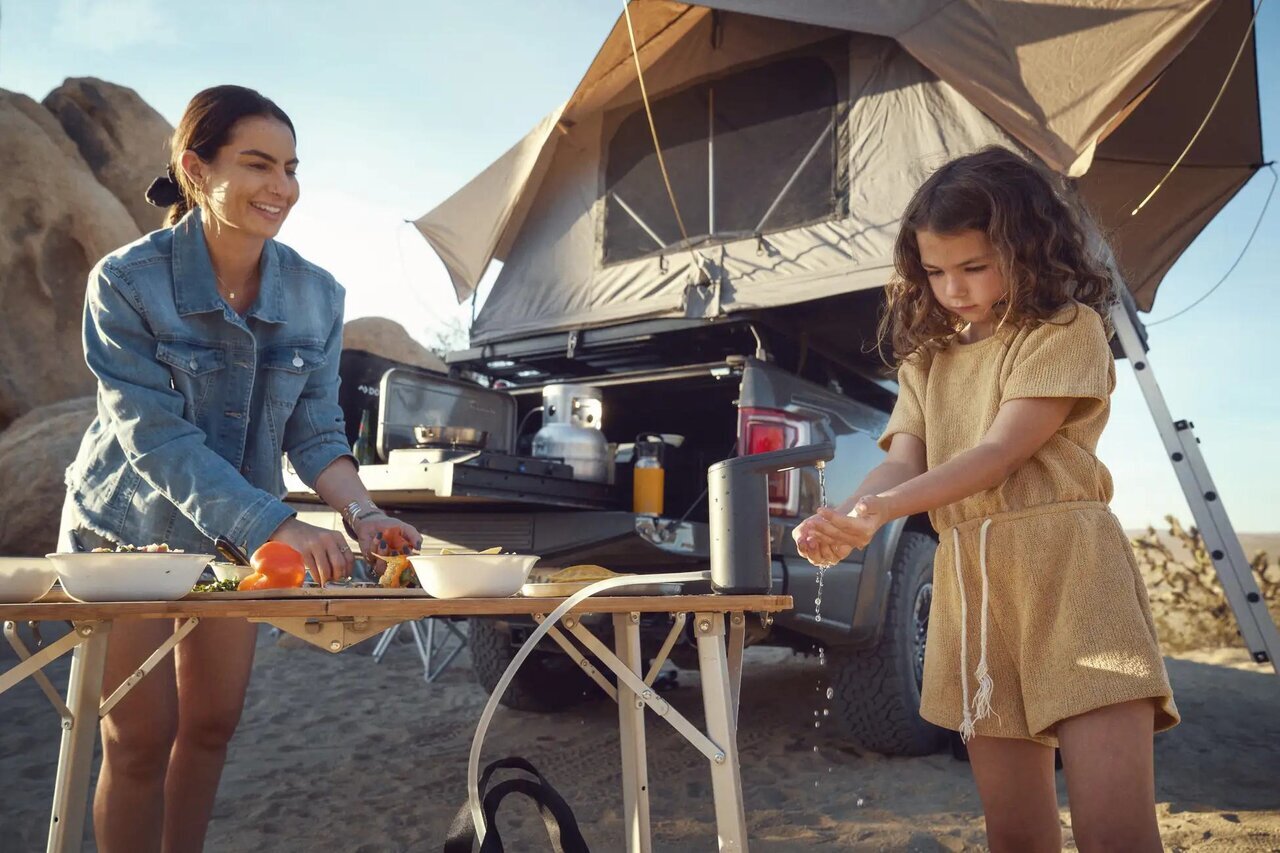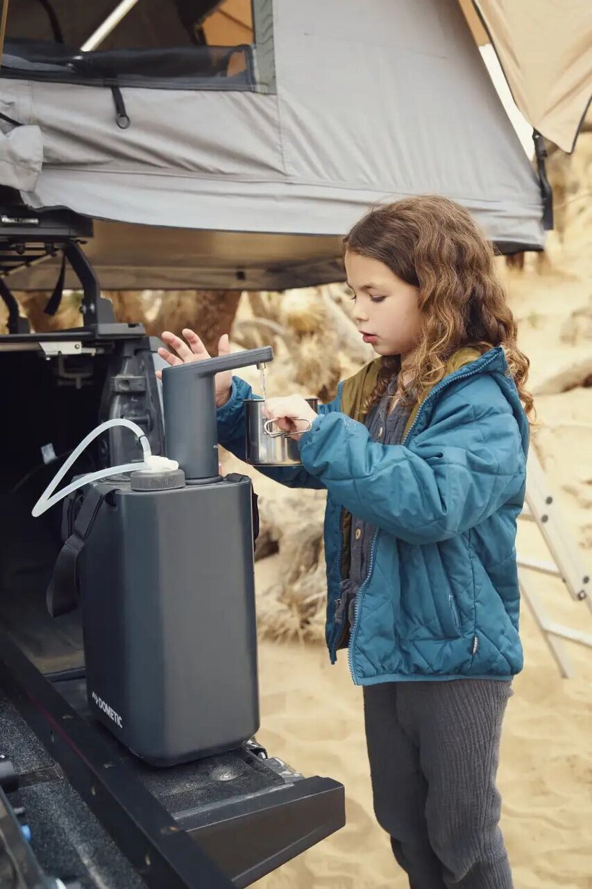 In outdoor settings, there are many scenarios where water is needed, such as washing dishes, boiling water, and hand washing or brushing teeth. In such situations, the "Portable Electric Water Faucet RCN-WF" and "Water Jug HYD-J11" can be of great help. They feature a design that allows the hose and tank water supply ports to connect perfectly, making it hygienic and resistant to leaves and dust. It seems useful for camping and car stays, providing clean water with just a touch of a button, like a faucet.
