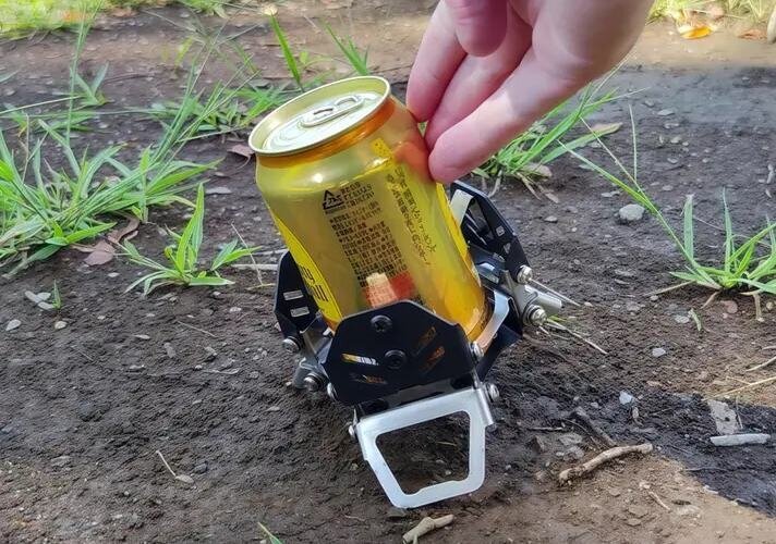 Whether on grass or sandy beaches, the base of the can doesn't touch the ground, making it less likely to get dirty, so cleanup is easy. It seems useful not only for outdoor use but also inside tents, cars, and at home, regardless of location. The stainless steel claws on the underside of the cover securely hold drinks in three points. It is strong against shocks from the side, and drinks can be easily lifted out with a light pull from above.