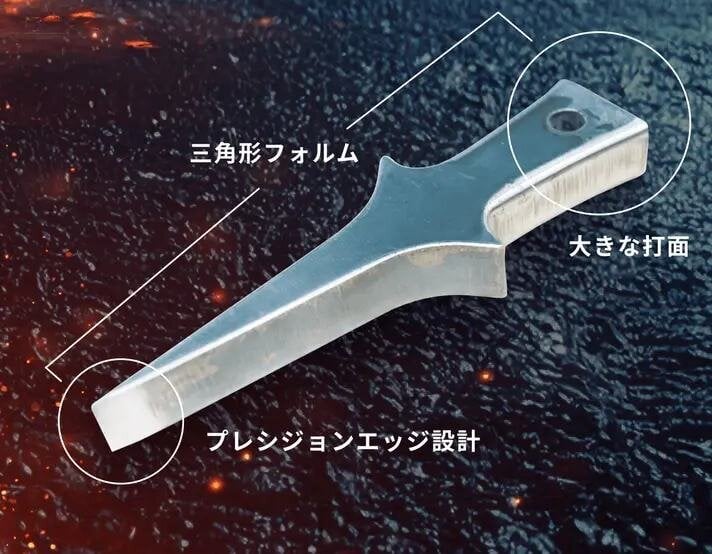 The secret to being able to split firewood with light force lies in the efficient dedicated design. It firmly transmits the power of the hammer to the firewood with a wide striking surface, and the triangular shape allows it to split without missing the fibers. Furthermore, the "Precision Edge Design" enables the force to be transmitted without waste. With a precise cutting edge, it bites accurately into the targeted position, allowing for beautiful wood splitting with light force.