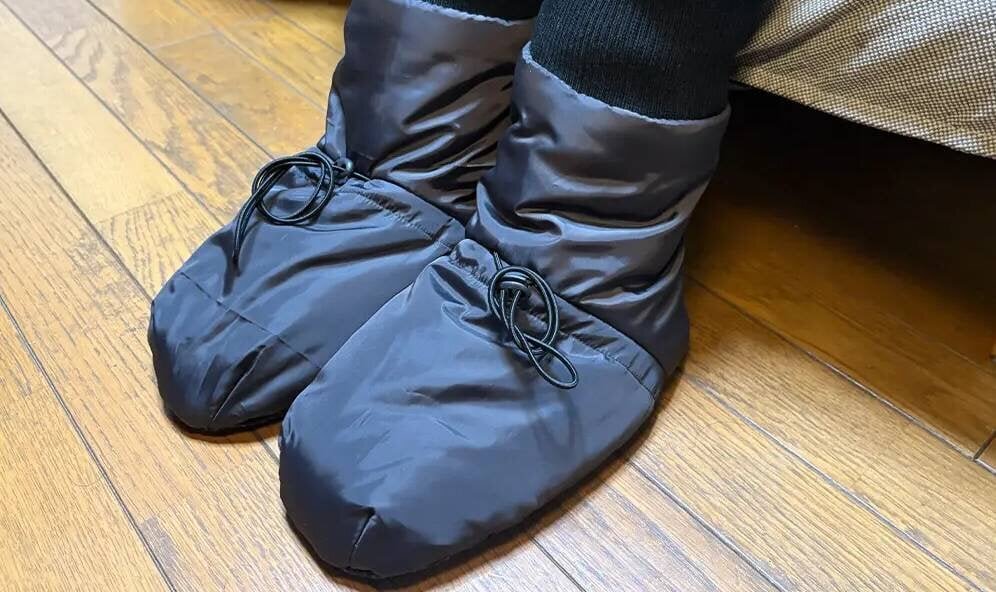 The "Heat Fiber" series also includes room shoes made of the same material. The thick 3D feather-light fiber wraps around the instep and focuses on keeping the often-cold toes warm. By blocking the cold air from the floor, you won't have to worry about cold feet whether in the tent or in the car. This is something you want to use as a set!