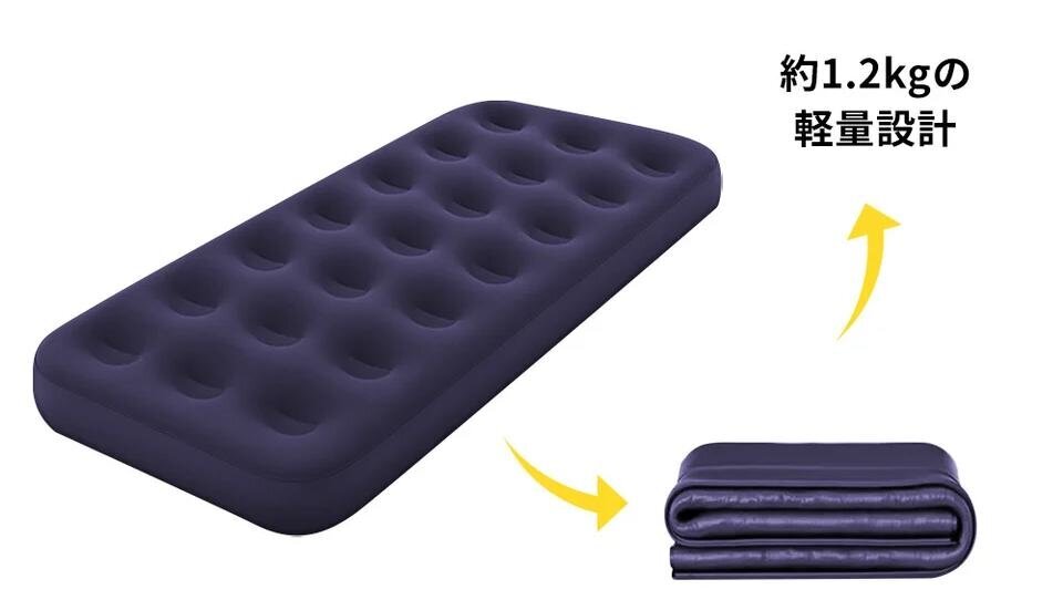 Weighing approximately 1.2 kg, it has a compact design that folds small for storage. It has a weight capacity of about 150 kg, so it's suitable not only for larger individuals but also for co-sleeping with a parent and child. It seems great for car camping, accommodating guests, or as an emergency bed during disasters.