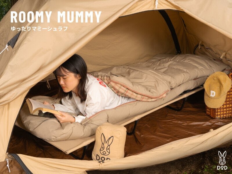 The "Spacious Mummy Sleeping Bag" for one person, which combines warmth and comfort, is also released simultaneously. While maintaining the thermal insulation of the mummy shape, it adds the openness to stretch your arms and legs like a comforter. It's a great combination of the advantages of both mummy and envelope shapes, allowing you to roll over freely.