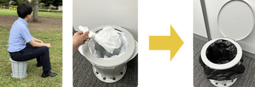This summer, folding chairs and stools have become a major topic due to the demand from the World Expo. Various models are being developed, but the "folding stool," which utilizes the know-how from emergency toilets, is versatile enough to be used in outdoor settings and during emergencies!