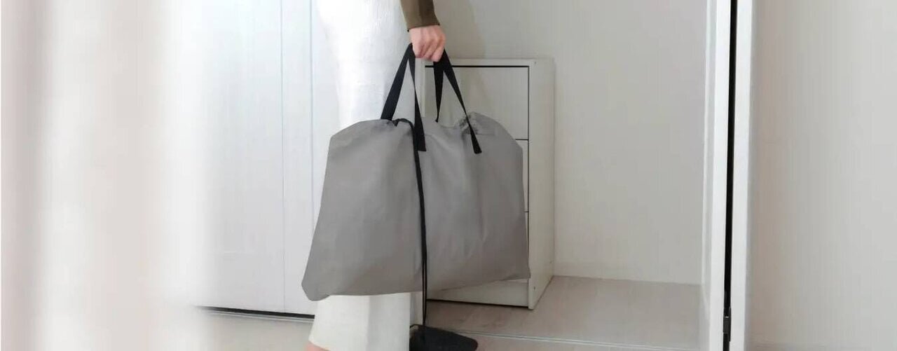 When you let the air out and fold it up, it fits snugly into the included storage bag. The main body weighs about 3.0 kg for single and about 4.3 kg for double, making it relatively lightweight. It's a size that easily fits into gaps in closets, under sofas, or in a car's luggage space.