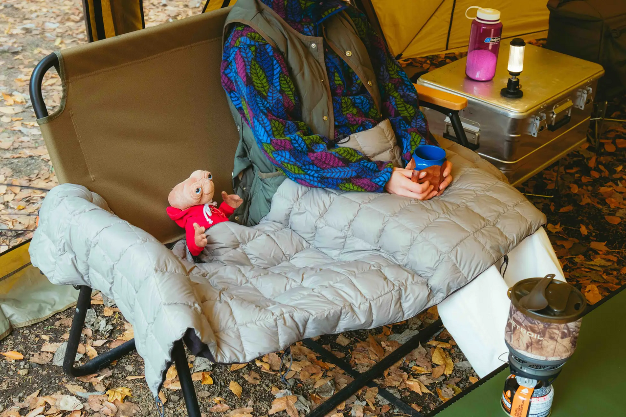 Simply adding it to a cot or chair makes it even more comfortable and warm. The "Wide Down Blanket" seems likely to become a companion for winter camping.