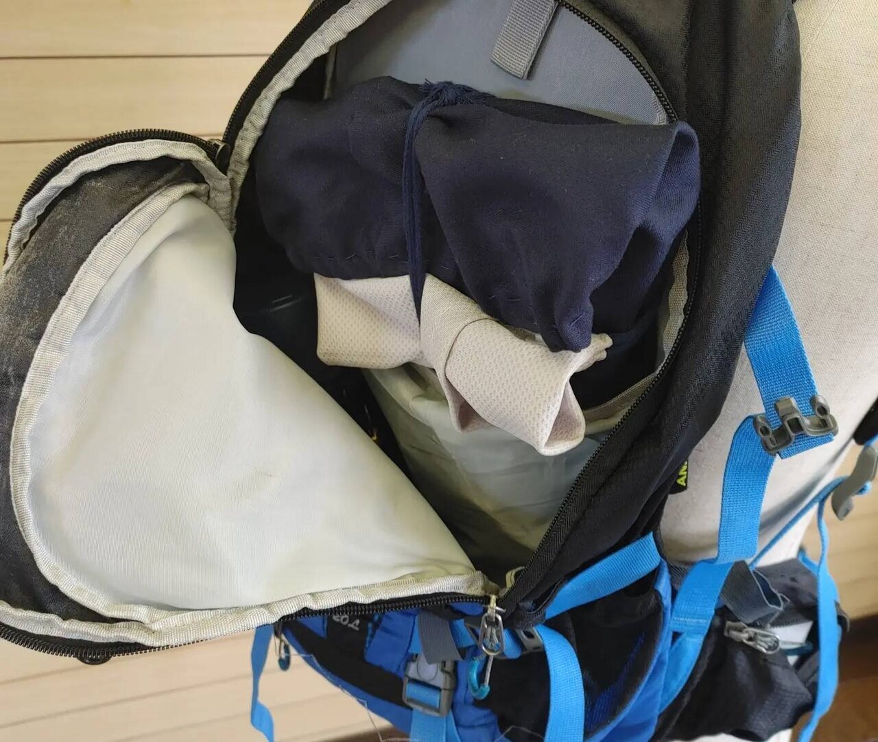 Compact storage with a 3-part structure. Convenient for mountain trips while using trains.