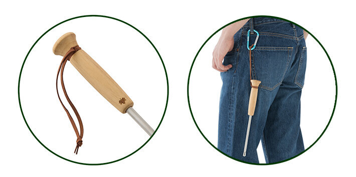 At approximately 42cm in length, it reaches the fire bed firmly, allowing you to move logs without worrying about heat or dirt. It comes with a leather strap for convenient hanging storage.