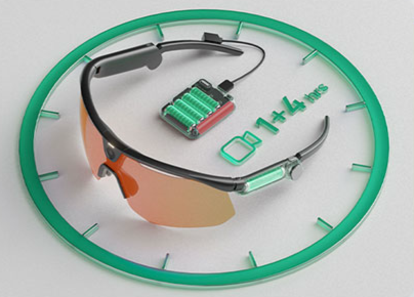 With a long-lasting battery, the main unit can be used continuously for up to 8 hours. It can record videos for 1 hour continuously or play music for 8 hours, so there's no need to carry another device.