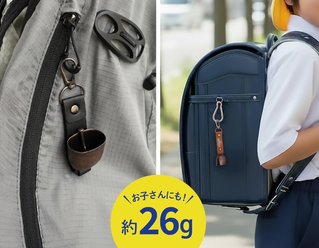 Using iron material, it is lightweight yet produces a clear, ringing tone. Even in the forest, the sound reaches the surroundings well, providing sufficient presence as a warning to bears.