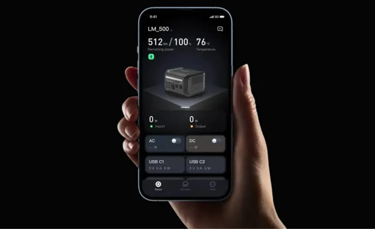 Power performance/output: Battery capacity: 512Wh (LiFePO₄ battery), AC output: rated output: 600W (pure sine wave), peak power (instant maximum): up to 1200W