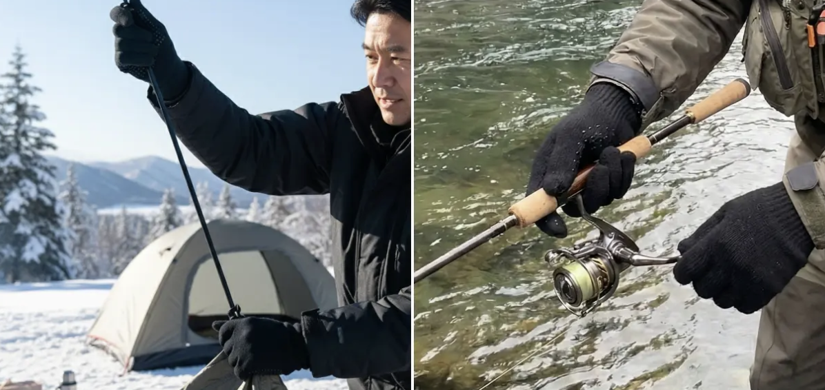 Does this mean they feel like vinyl gloves...? However, they are comfortable even after wearing them for long periods. While they guard against moisture from rain and snow, they allow sweat and humidity from within to escape outside, keeping a dry wearing sensation. Furthermore, the outer layer employs lightweight and tough acrylic knit. Strong against friction and pulling, they are sure to excel in active situations like camping, fishing, and sports.