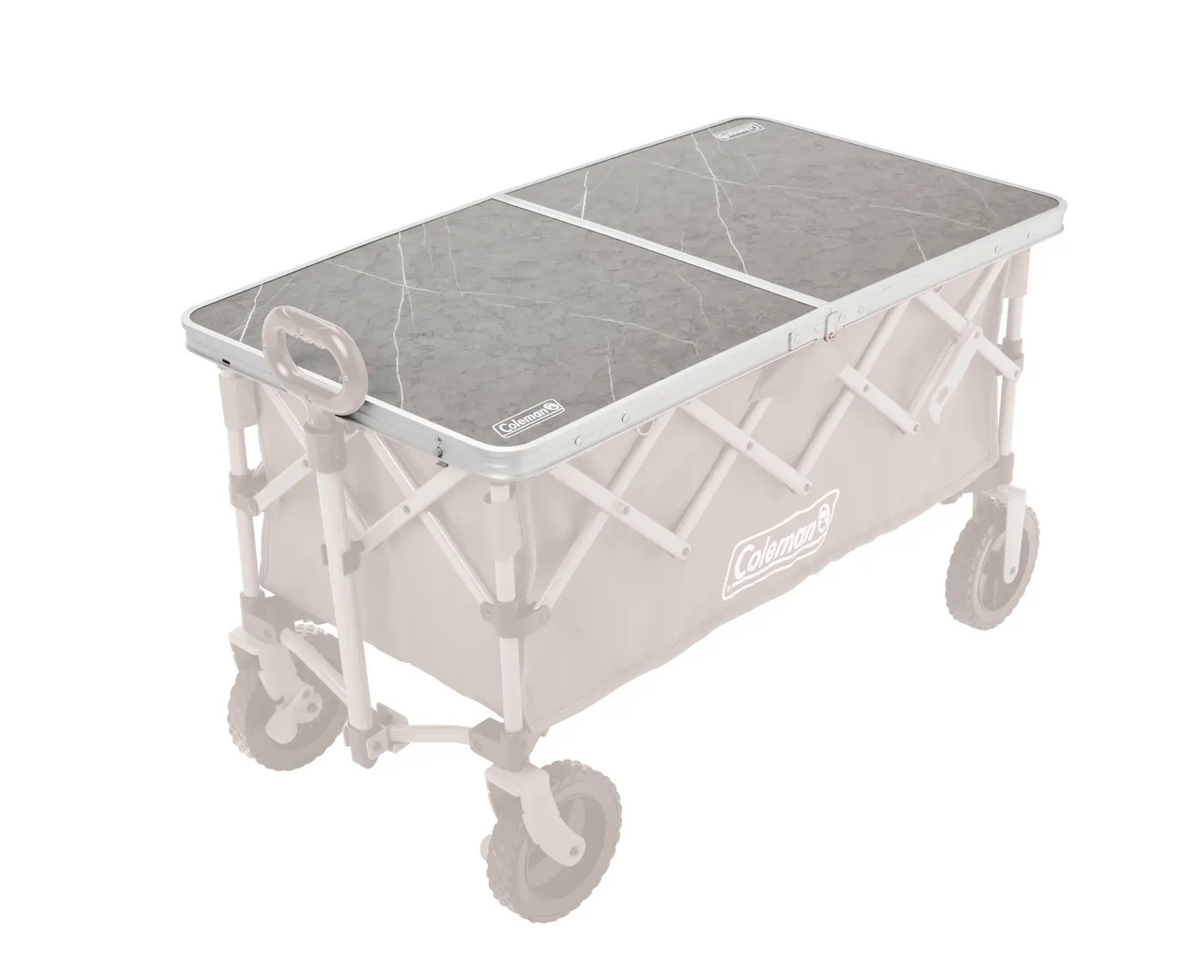 The Coleman "Outdoor Wagon Table" can be used simply by placing it on top of the standard "Outdoor Wagon" series. It is a tabletop that transforms the entire wagon into a caster-equipped table.