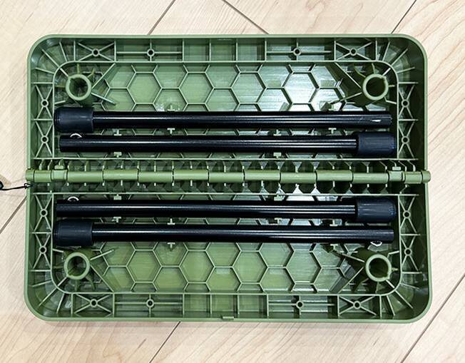 With a flat shape that has no protrusions, it can be stored without taking up space in your bag or car. The legs can be secured inside the case, making it easy to carry quietly. There’s no doubt it will be a great help in emergency situations, such as disasters, at evacuation centers or waiting places.