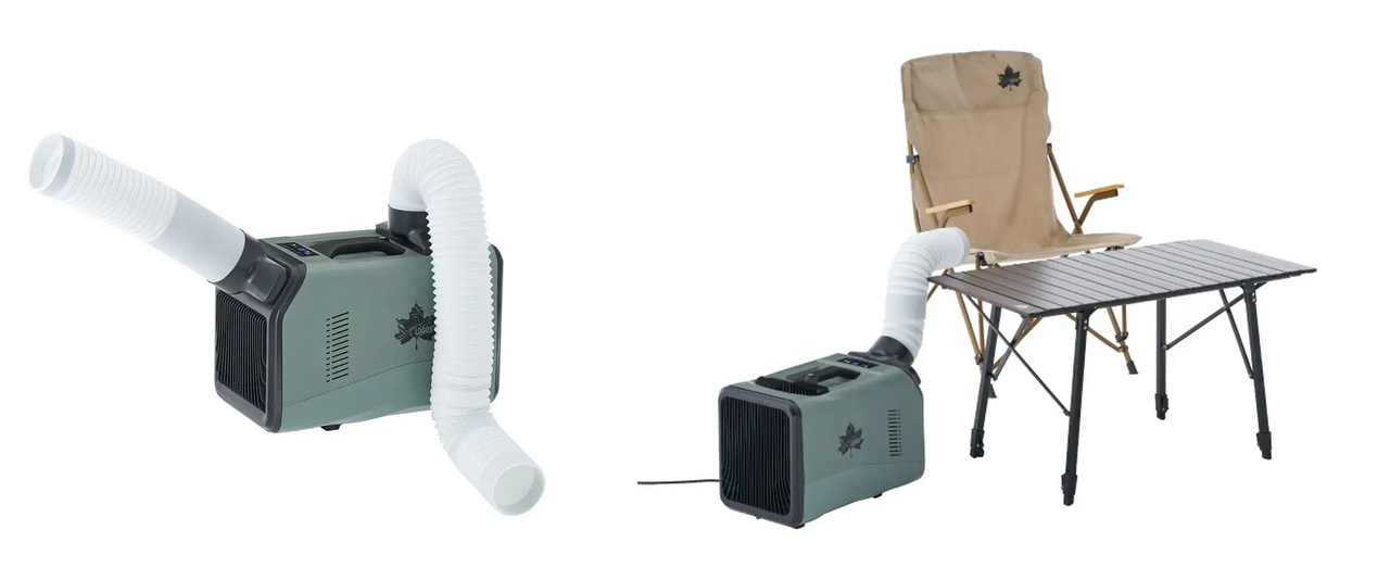 A portable air conditioner for outdoor use that brings coolness to the tent
