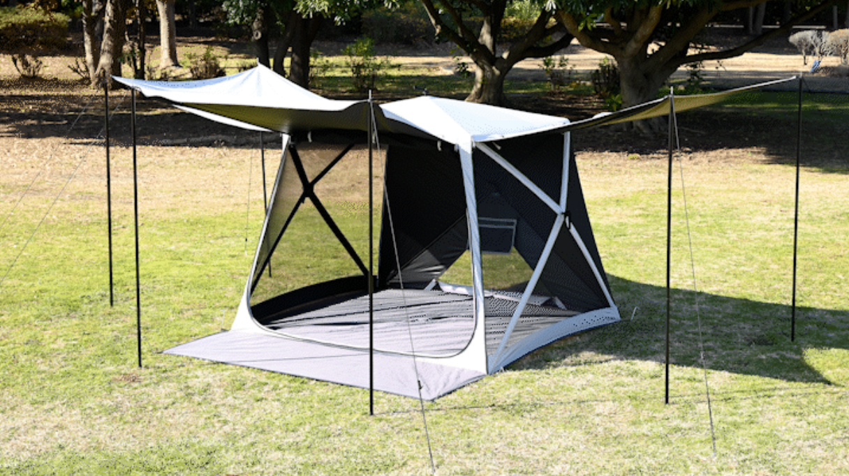 As expected from Yamazen~! I couldn't help but applaud at the "Quick and Easy Tent" that can be set up and taken down in 10 seconds. It seems that it can be set up just by spreading it out like an umbrella, featuring a cube shape with excellent heat and light shielding and three open sides. Let's check out the intriguing gimmicks and price.