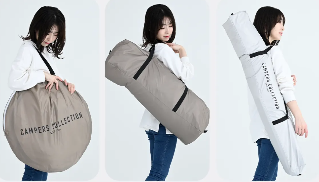 It can be conveniently carried in a compact form, making it useful during transportation. It seems like it will be a great companion for outings all year round.