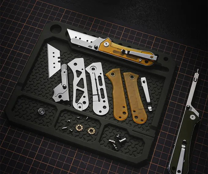 It is a folding utility knife that combines compactness and functionality, naturally integrating into daily unboxing tasks or outdoor rope cutting as part of an EDC setup.