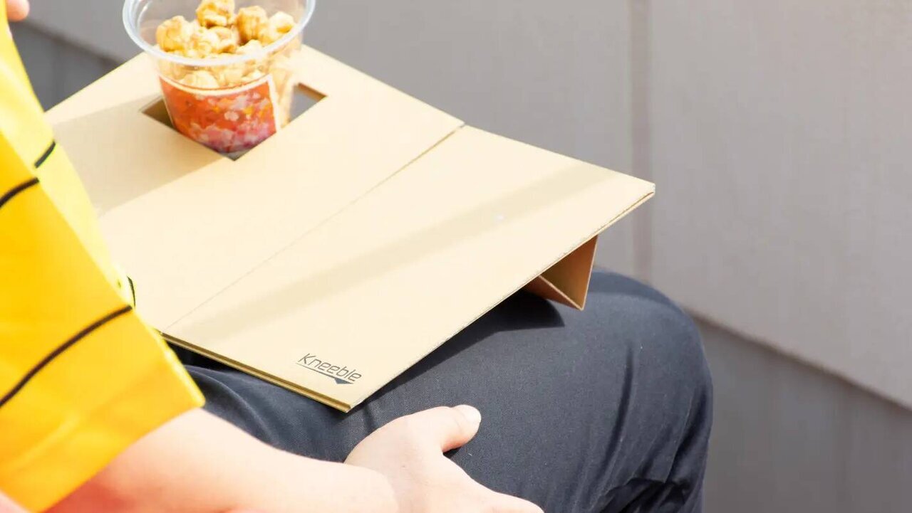I want to enjoy meals and beer comfortably while watching a game at the stadium. That’s when you want to quickly take out the "Kneeble" from your bag. Just place it on your lap, and a table and drink holder are instantly ready. You won’t have to worry about where to place your food and drinks while enjoying sports anymore!
