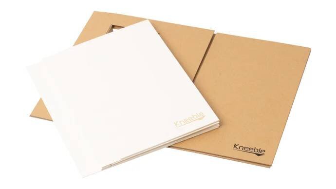 Weighing only about 150g and the size of a convenient notebook. It fits easily into a bag, making it easy to carry. The stable design utilizes the slope of your knees, with legs that angle slightly downwards towards you.