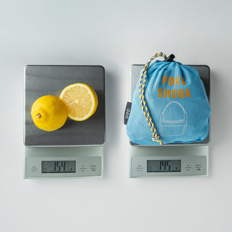 The shoulder-type "Pokesho" has an ultra-lightweight design of approximately 150g. Yet it secures a capacity of about 12L, with a load capacity of about 7kg. It is robust enough to safely hold three 2L plastic bottles. It will be useful not only as an eco-bag while shopping but also as a sub-bag during sightseeing.