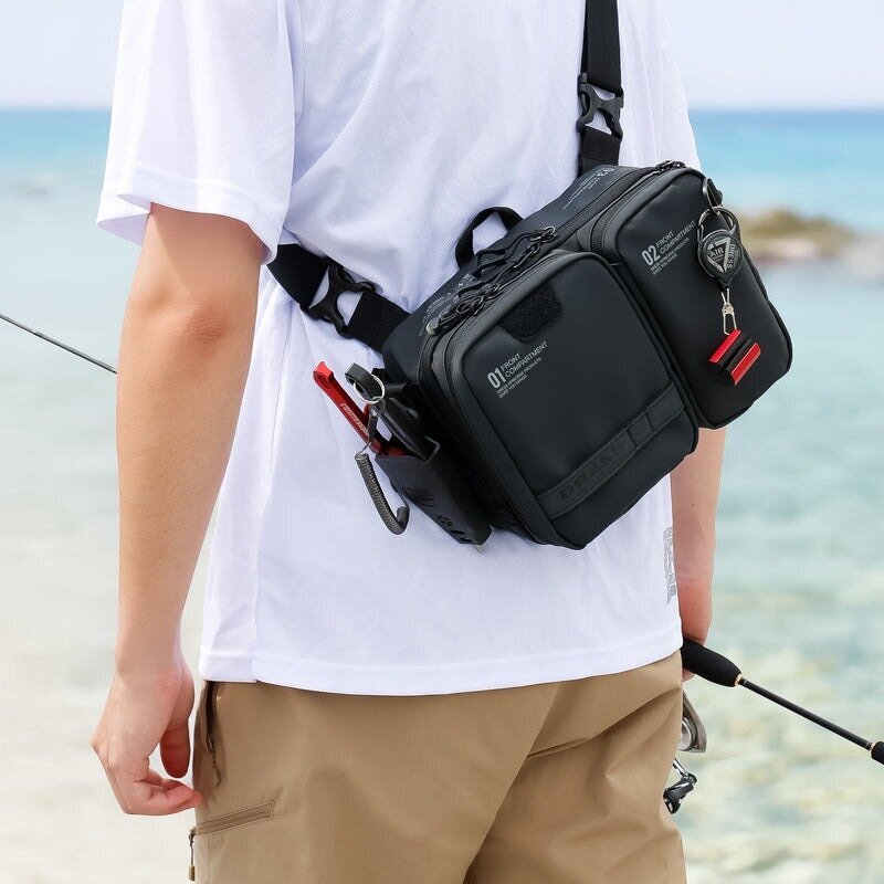 The length of the shoulder belt can be adjusted to match your body shape and clothing. With a perfect fit, it's said to reduce shoulder and lower back fatigue during long fishing trips. By simply swapping the buckles on either side, you can freely switch between right or left carrying according to your preference.