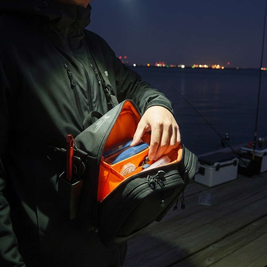 The light game bag developed by DRESS is designed focusing on mobility and responsiveness rather than storage capacity. It resolves common issues such as not being able to see the contents at night and having trouble switching lures.