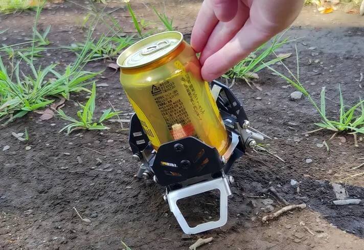"Canchor" is a drink holder designed to solve such situations. By simply spreading its expandable three-legged stand and placing it on the ground, you can secure a stable "placement" even on uneven surfaces like grass, sandy beaches, or dirt slopes.